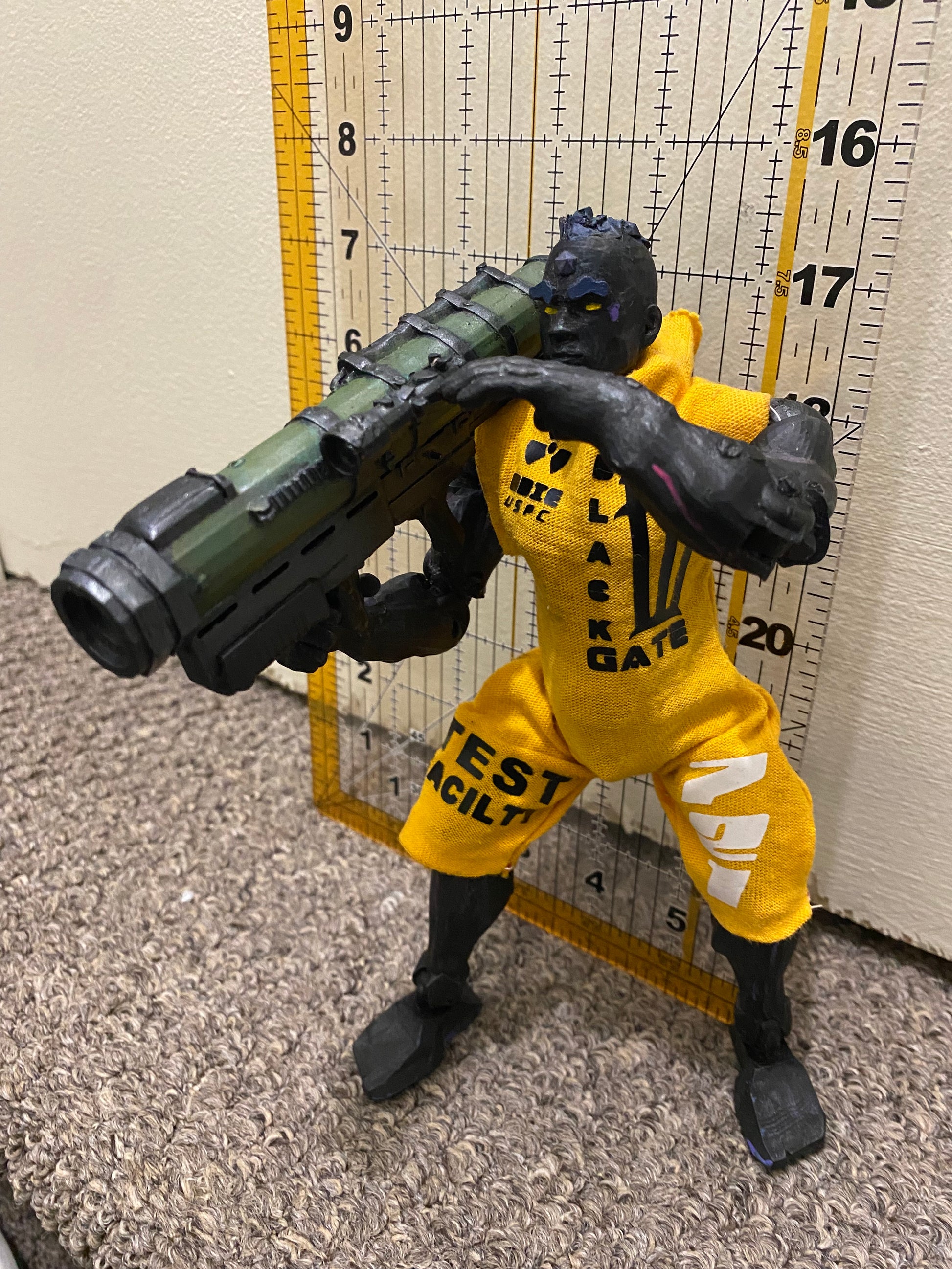 The Obsidian Giant action figure was our initial take on a nuclear man. A young man who hasn’t realized his true strength just yet but is ready for battle. The Obsidian Giant Project is directly related to our Pest Control comic book. He’s a resource you activate I. The field under extreme circumstances. Obie Adams is his name and although he’s a giant he’s not through growing. In tough situations Obie grows several feet. Currently in action figure form he stands at around 8 1/2 inches which would be 8 1/2 ft in the comics this figure is limited to 45 figures. OBIE does come with a rocket launcher with rockets, soft cloth goods and a link to download his story this figure makes an excellent addition to your collection. Each Model is numbered and signed, get yours today.